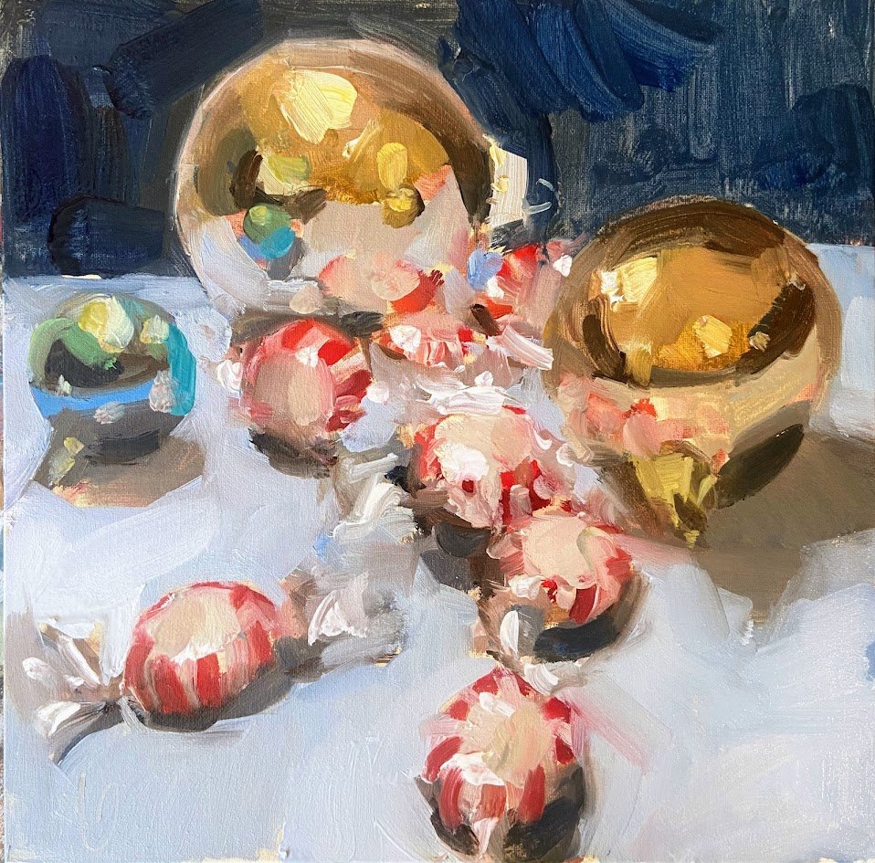 It was during that time of professional transition that I launched my goal of painting 500 paintings. The goal was for me to grow as an artist by habitually painting several small paintings each week. The 500 Painting Project took me four years and by the end, I was 'up on the bike' as a professional artist, selling my work at local fairs such as Broad Ripple Art Fair and Penrod Arts Fair. In the ten years in which I have been painting professionally, I’ve had many wonderful opportunities to share my artwork with the community in partnership with the following events/organizations: The Decorators’ Showhouse, Methodist Hospital, Palliative Care Unit, Office exhibit (2022-23), Harrison Center for the Arts, High Frequency Arts, Local interior design firms [Sassy Green Interiors, Tiffany Skilling Interiors, Home & Willow Decor and Design, Judy Bates Design], Hamilton County Artists Association, Indy Counseling Professionals Office, and the Indiana Plein Air Painters Association.